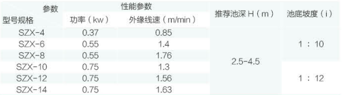 工作原理:SZX 型中心傳動濃縮機采用蝸輪蝸桿(<φ8m 可采用擺線針輪減速機,>φ14m 采用中心回轉齒輪)傳動,刮泥壁上設計有縱向攪拌柵條,刮臂旋轉時柵條起攪拌作用,加速活性污泥的下沉,刮泥板外緣線速度≤3m/min。整個刮泥機構可以手動提升400mm (用擺線針輪減速機不可以提升)。