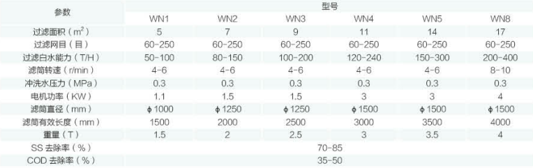 注:當(dāng)廢水濃度越高、網(wǎng)目越高,SS、COD 去除率越高。可根據(jù)用戶需求,定做處理量大的機(jī)型和不銹鋼材質(zhì)配件。