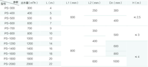單臺水量計算:Q=S*△H/n*t   n-潷水器 數量(臺)  t- 汽水時 間 (h)表中潷水深度△H指最大港水深度,同用戶根據實際情況確定。